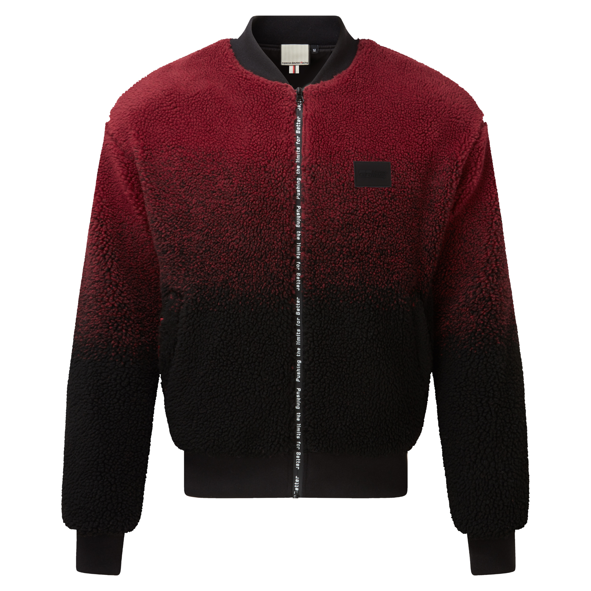Crafted from recycled polyester, this soft fleece jacket features a unique ombré design that fades dramatically from TGR's signature red to black. It's the perfect blend of warmth, style, and racing support.